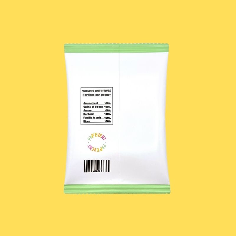 PS : Si vous choisissez la livraison produit imprimé et monté, le paquet de chips sera un petit sachet Lay's nature :)